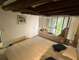 appartement boutique avec des murs en pierre et poutres apparentes . Hauteur sous plafond de 3.50metres.2/3 pièces cuisine salle d'eau et toilettes.Double accès dans l appartement.Cour arborée à l’arrière;